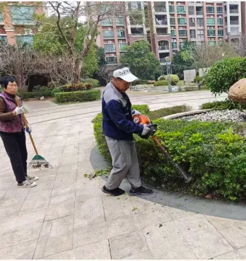 小区的每个角落,都有他们默默奉献的身影,整洁和舒适优美的环境都离不开他们的辛勤付出。营造安心舒适的家园是保洁人员共同的目标。