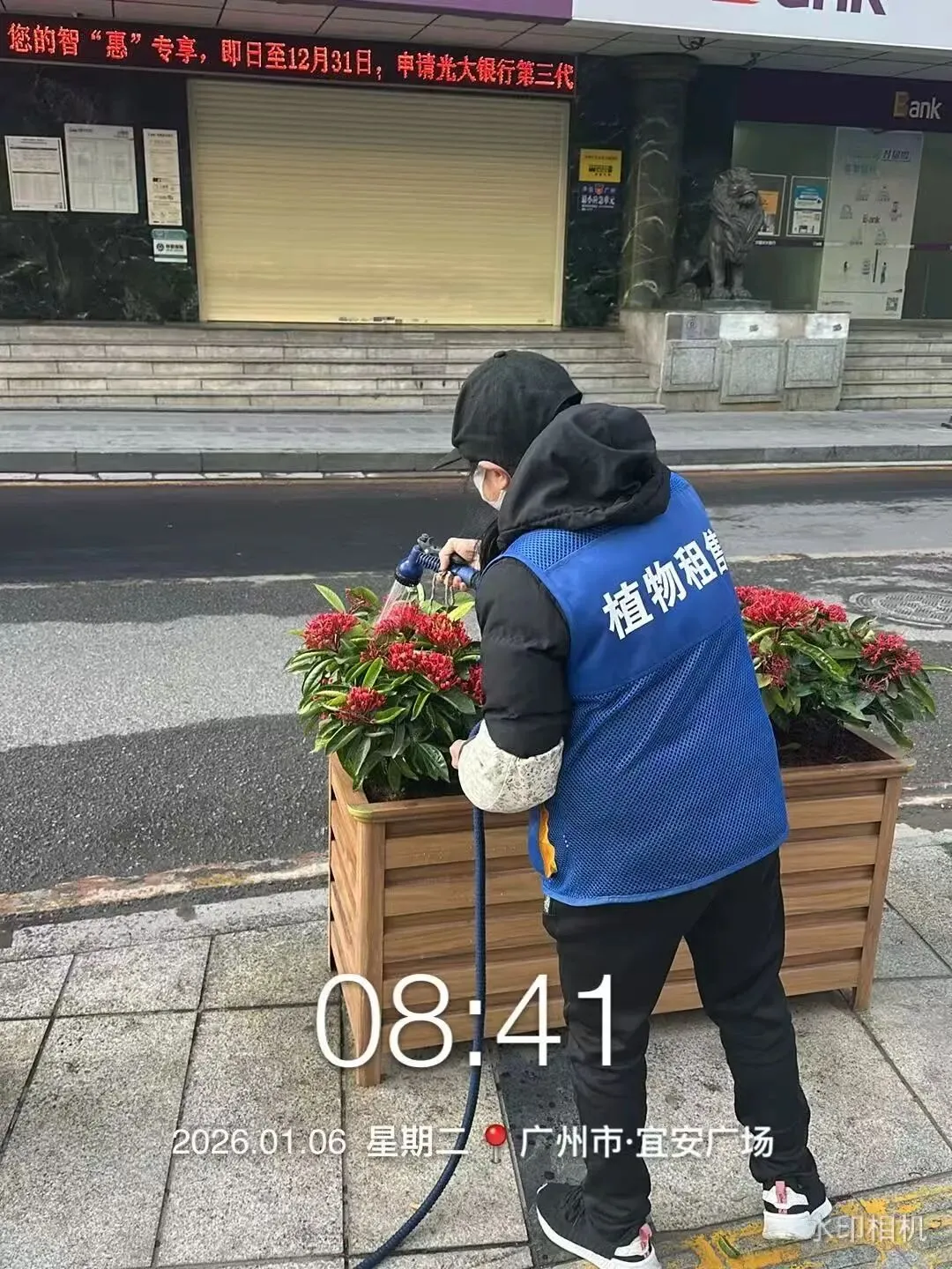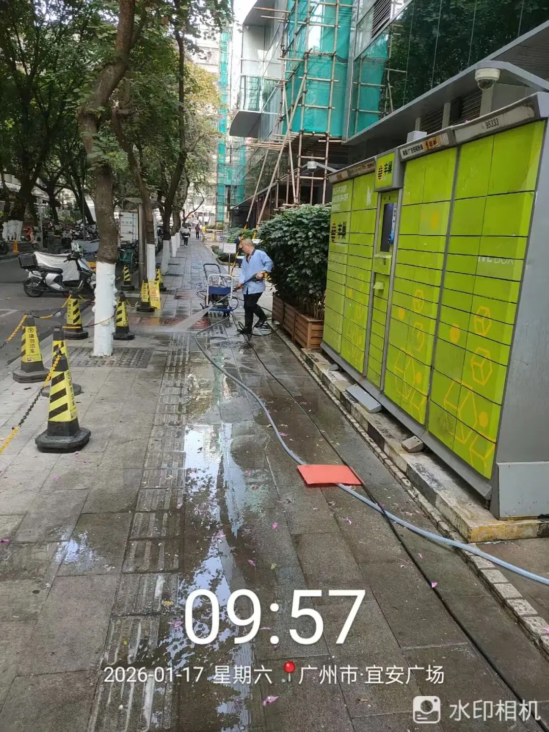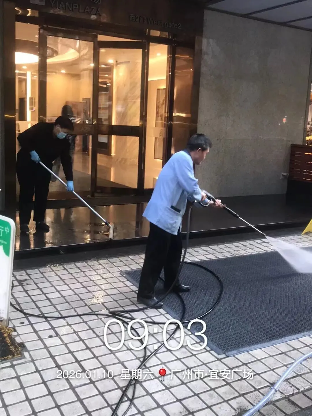 对外围地面进行清洗