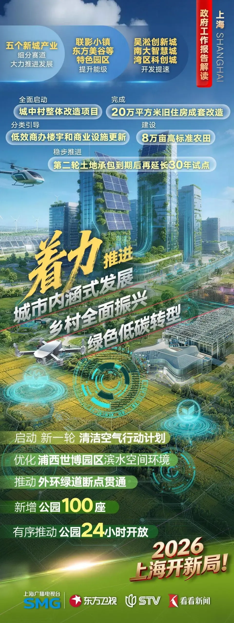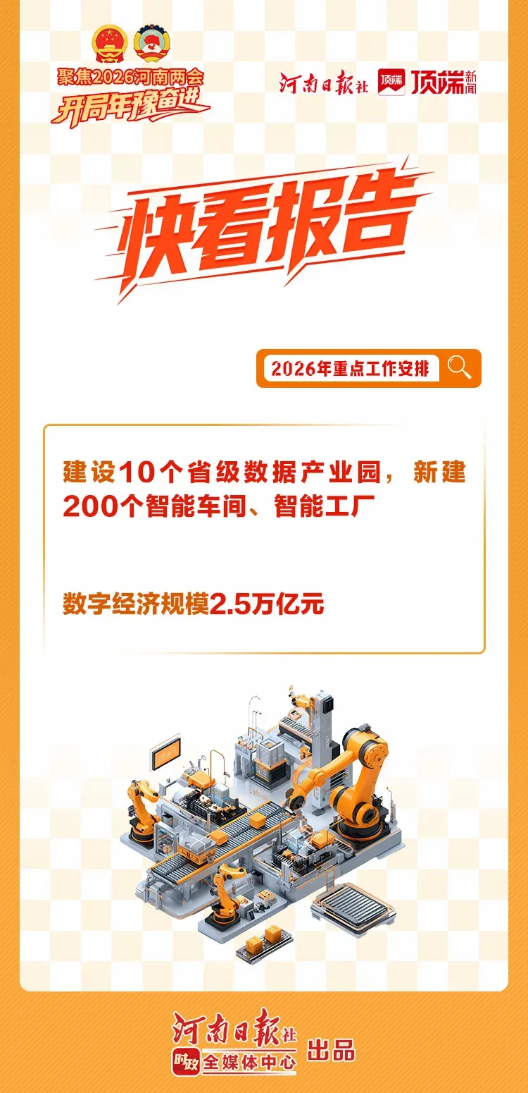 建强数智赋能体系。深化拓展“人工智能+”行动,加快国家医疗、农业领域人工智能应用中试基地建设,布局建设人工智能创新生态社区,支持工业、文旅、能源等领域大模型建设,推进人工智能全域全时全行业高水平应用。开展“数据要素×”行动,推进5G-A超宽带网络重要场景深度覆盖,支持中小企业数字化转型城市试点建设,推动企业“上云、用数、赋能”,建设10个省级数据产业园,新建200个智能车间、智能工厂,数字经济规模2.5万亿元。