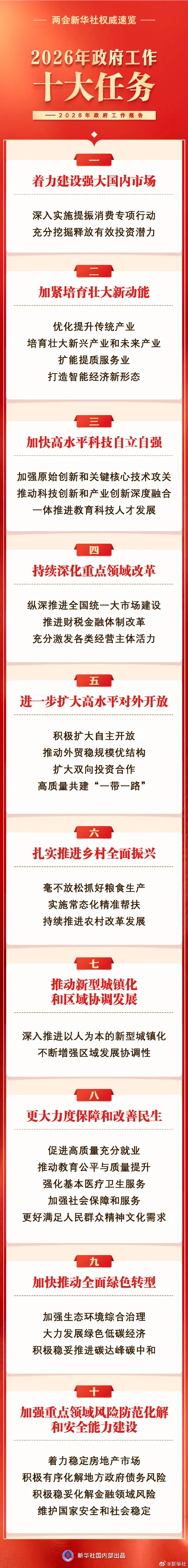 政府工作报告在介绍2026年政府工作任务时提出,加强反垄断、反不正当竞争,强化公平竞争审查刚性约束,综合运用产能调控、标准引领、价格执法、质量监管等手段,深入整治“内卷式”竞争,营造良好市场生态。深化要素市场化配置综合改革试点,将更多符合条件的地区纳入试点范围。
