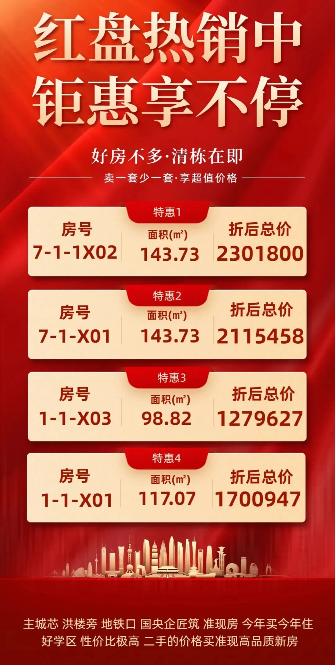 即将加推4# 总高17层 两梯两户 2个单元 预计均价29000-32000元/㎡ 总价580-590万左右;