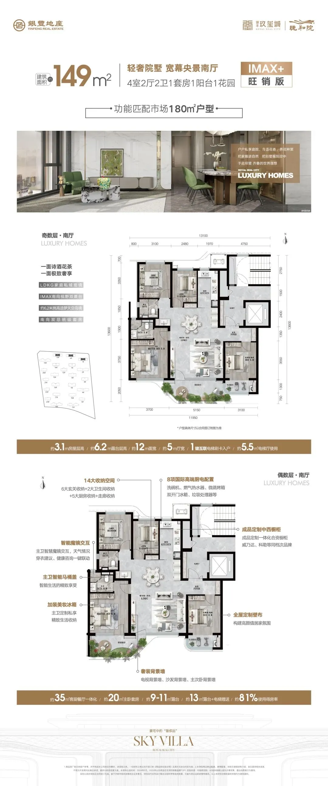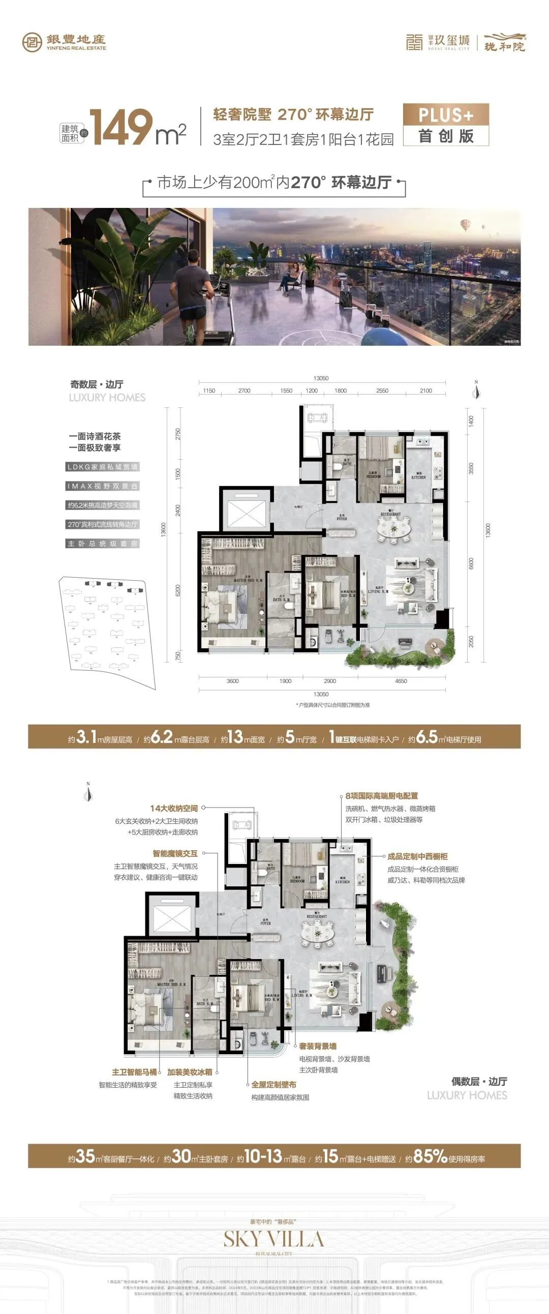 🌸得房率:80%-110% 露台面积:10-72 ㎡ (赠送约 2/3 面积)