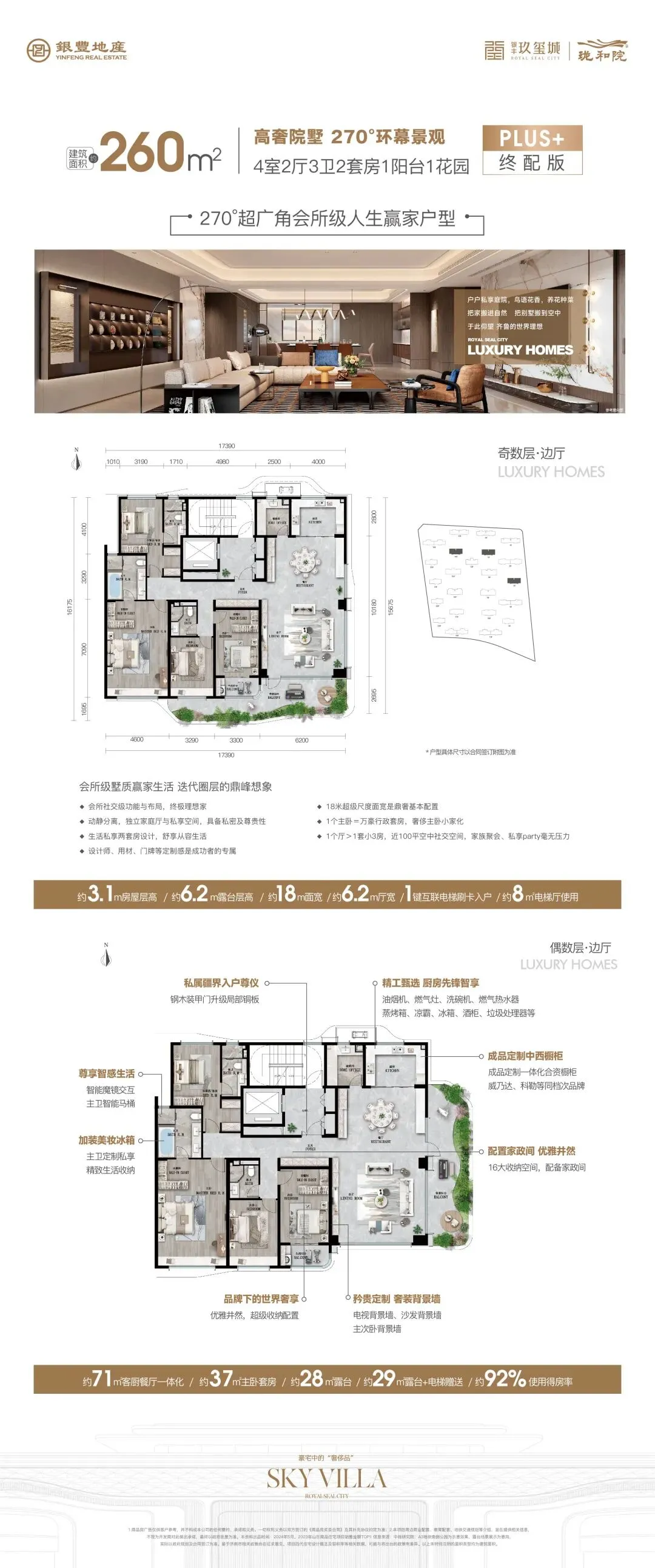 16# 16层 两梯一户 1个单元 均价30000-35000元/㎡ 总价950-1100万左右,楼层可选