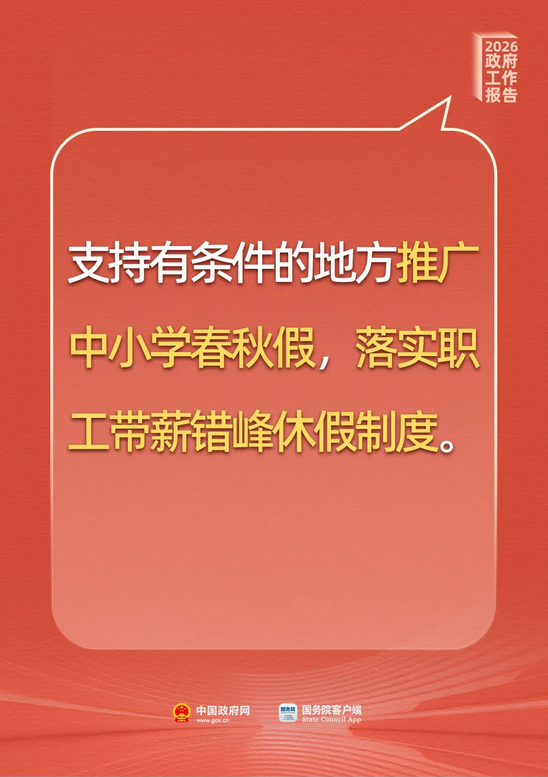 政府工作报告:支持有条件的地方推广中小学春秋假,落实职工带薪错峰休假制度