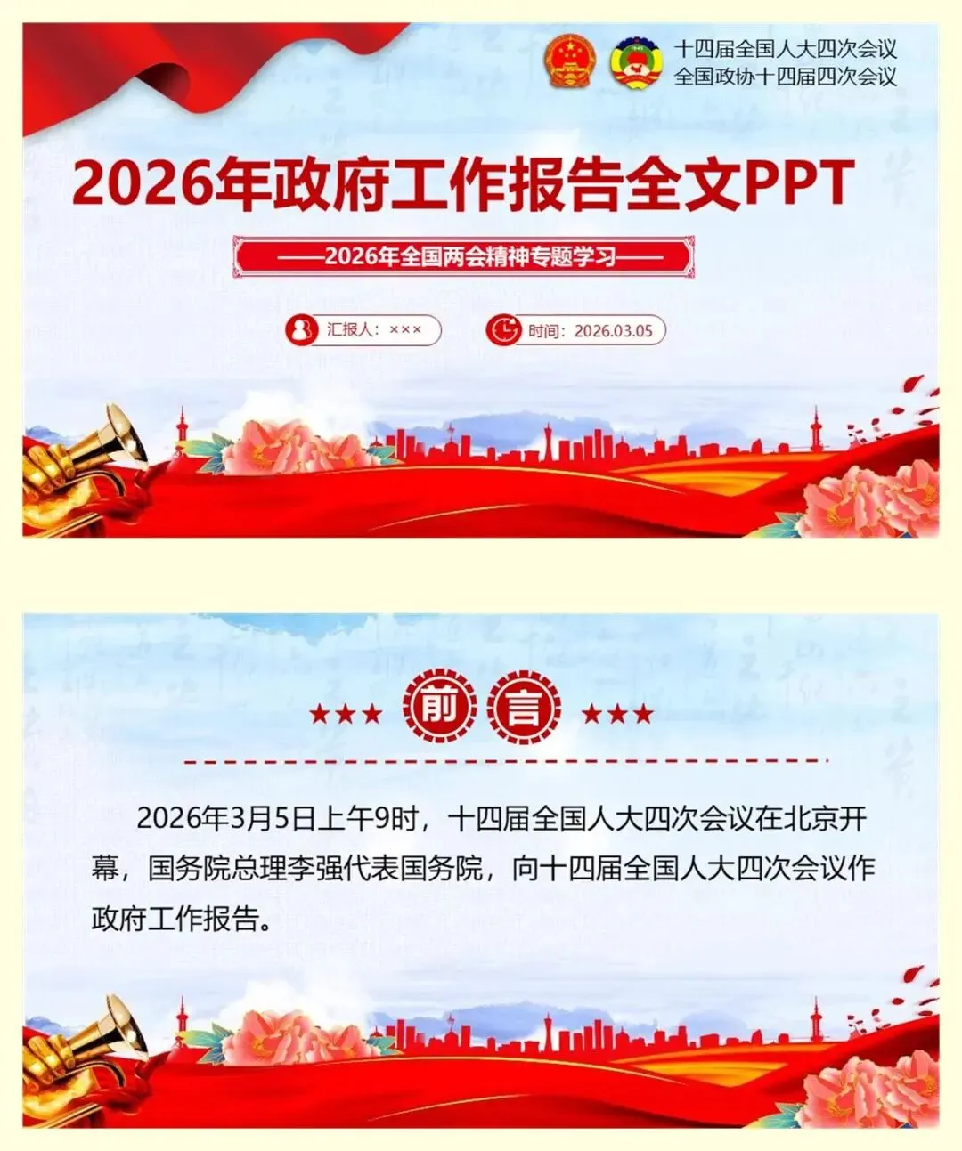 >完整版2026年政府工作报告全文(附PPT+讲稿)