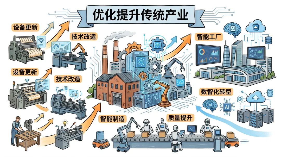 培育壮大新动能,根基在实体经济,关键在推动传统产业优化升级。传统产业是我国经济发展的“压舱石”,其提质升级直接关系到现代化产业体系的坚实度。报告明确提出持续推进重点产业提质升级,通过政策引导与资金支持双轮驱动,推动传统产业向高端化、智能化、绿色化转型。其中,2000亿元超长期特别国债资金的安排,成为支持大规模设备更新的核心抓手,截至2026年1月,第一批936亿元资金已下达,支持工业、能源电力等多领域约4500个项目,带动总投资超4600亿元,有效激活了设备更新的市场活力,为传统产业技术改造提供了坚实资金保障。