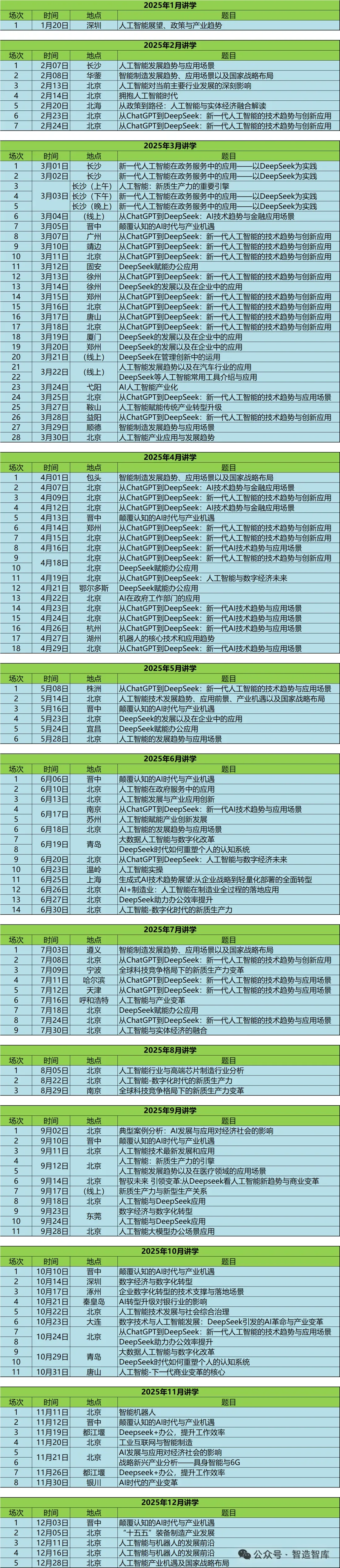 2025年讲学120多场,讲学领域主要为:人工智能、新质生产力、数字经济、数字化转型、智能制造、DeepSeek、ChatGPT、机器人、工业互联网、工业4.0等。