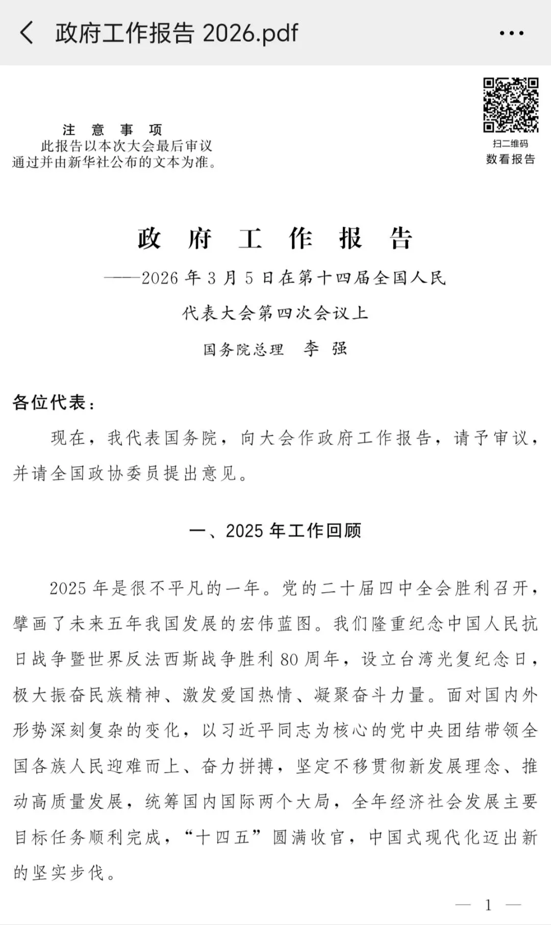 2026政府工作报告全文PDF版