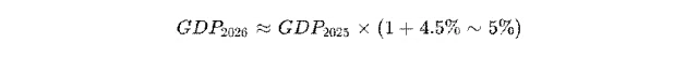 进入2026年,中国经济面临着全球增长动能疲弱(预计全球GDP增速仅约2.3%~2.6%)以及国内新旧动能转换步入深水区的复杂考验1。为此,2026年政府工作报告设定了4.5%—5%的经济增长预期目标 1。这一目标设定既兼顾了与2035年远景目标的衔接,也为调结构、防风险、促改革留出了必要的政策余地 1。