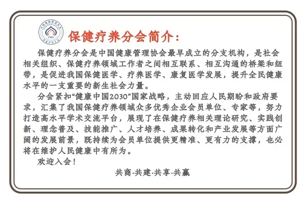 1)分会可牵头制定疗养康复行业标准、开展质量评价、组织学术交流(如心脑血管提前干预研讨会、睡眠疗养研讨会等),推动行业规范化、高质量发展。
