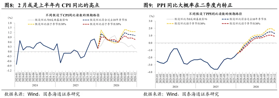 2026年通胀目标维持在2%,且强调了“预期引导”的作用。此次全国两会政府工作报告中提到,“居民消费价格涨幅2%左右,考虑了预期引导和现实可能,我们将通过改善总供求关系,推动价格总水平由负转正、消费价格合理温和回升。促进经济良性循环”。在2025年两会首次将通胀目从3%下调至2%之后,此次对物价目标的表述相较前一年更加详尽且务实,强调了通胀目标在“预期引导”上的作用以及现实实现的可能性。目前CPI同比已于2025年10月转正,我们预计PPI同比大概率在二季度内转正。