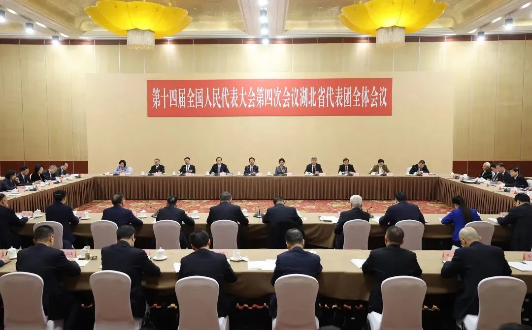 3月5日下午,十四届全国人大四次会议湖北代表团举行全体会议,审议政府工作报告。