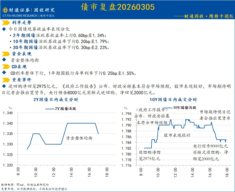 《政府工作报告》公布,长端利率下行(20260305)