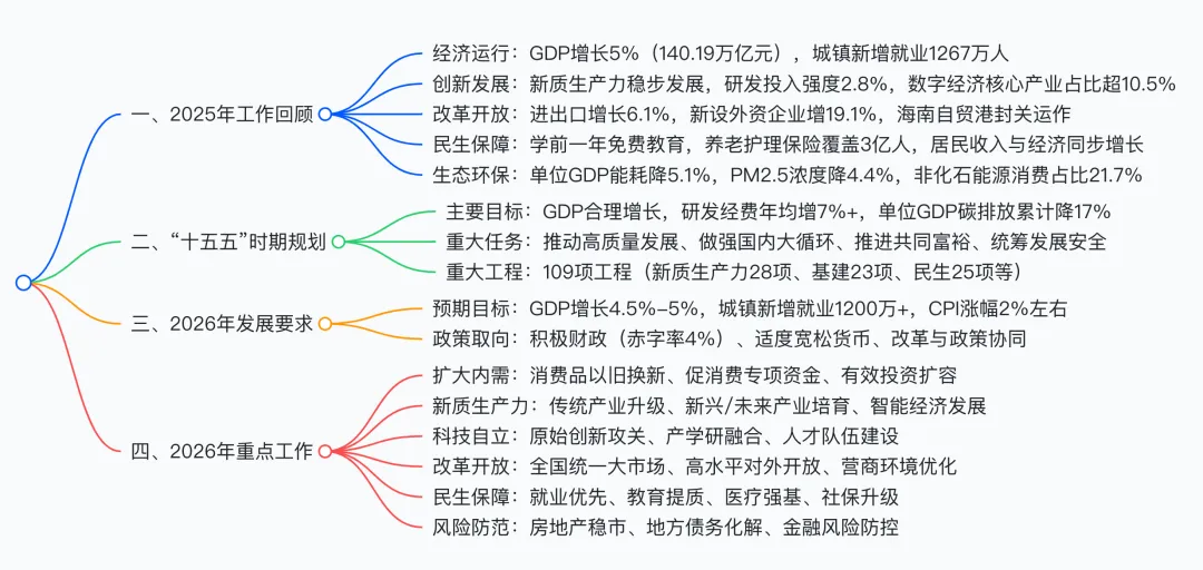 很多人觉得报告全是宏大叙事,离自己的工资、消费、买房、养老很远。但其实不然——2026年作为十五五开局之年,报告里的每一个数据、每一项政策,本质上都是在回答三个核心问题: