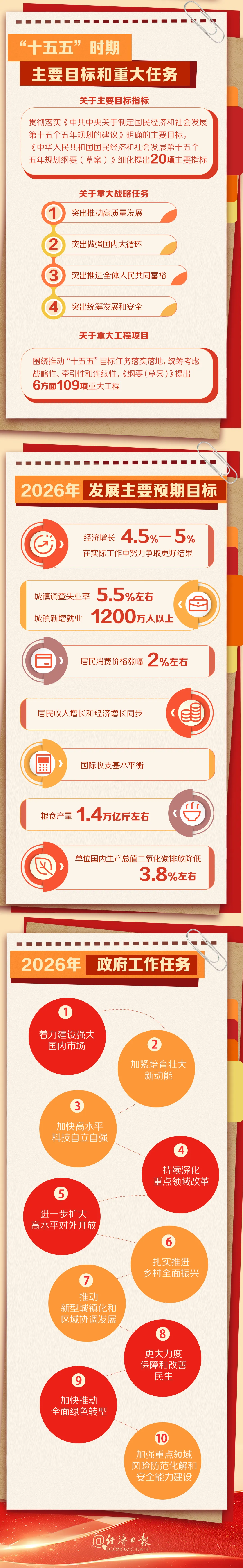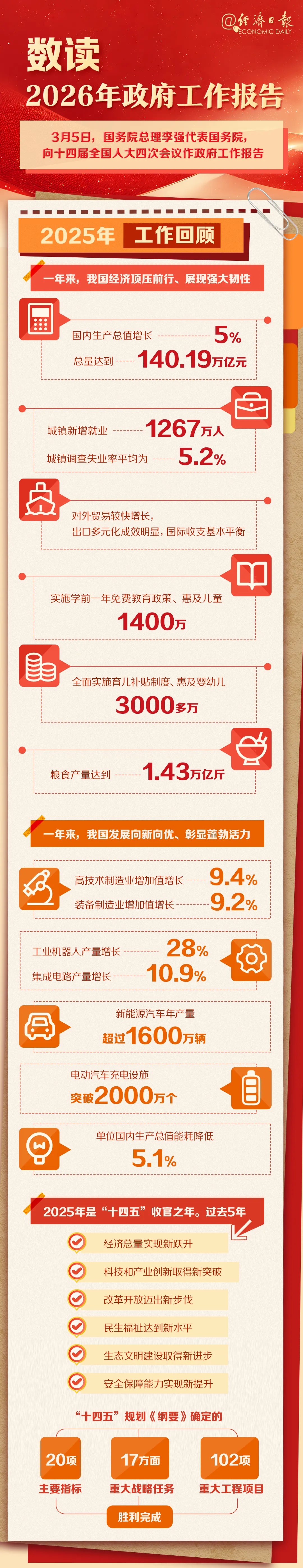 3月5日,李强总理向十四届全国人大四次会议作政府工作报告,要点如下: