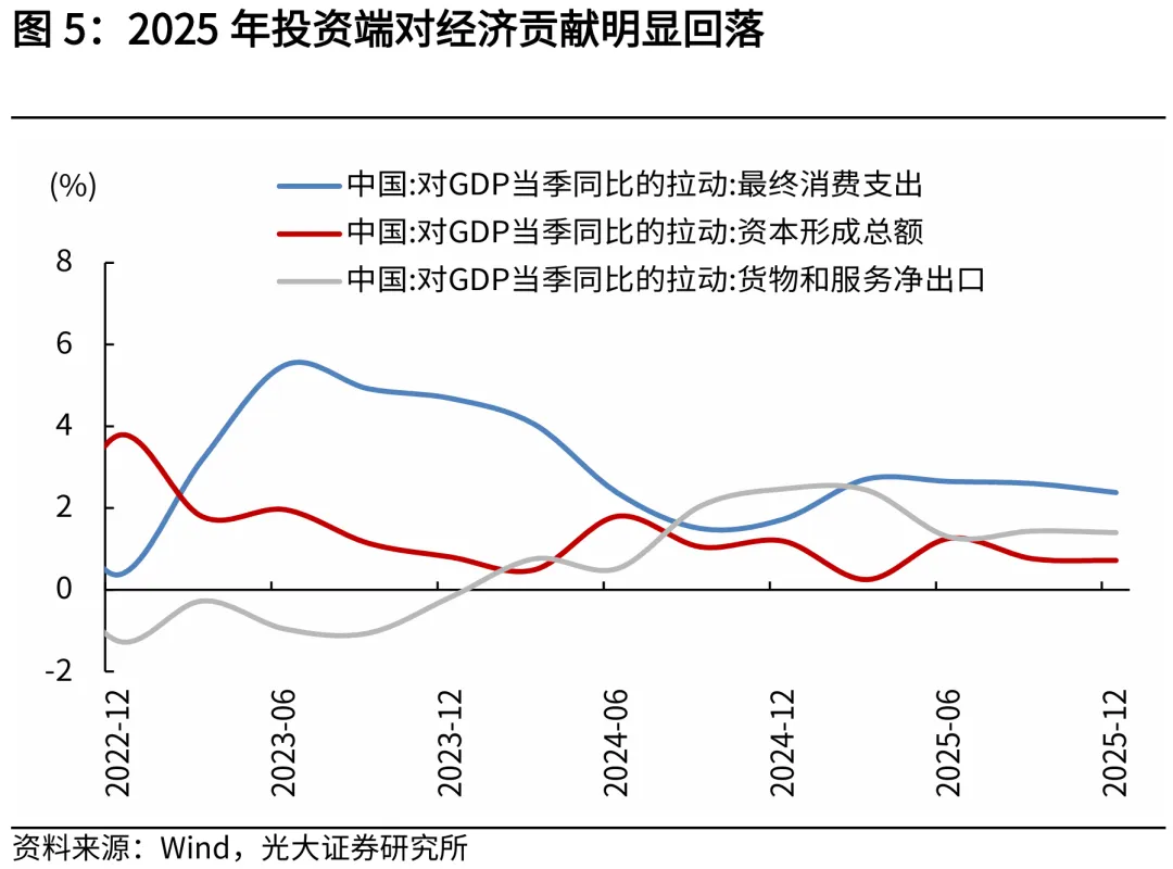 从2026年安排的1.3万亿特别国债来看,8000亿元用于支持“两重”建设,持平于去年,2500亿元用于支持消费品以旧换新,比去年少500亿元,2000亿元用于支持大规模设备更新,持平于去年。那么,为什么我们理解重点依然在向“两重”项目建设和消费领域倾斜?
