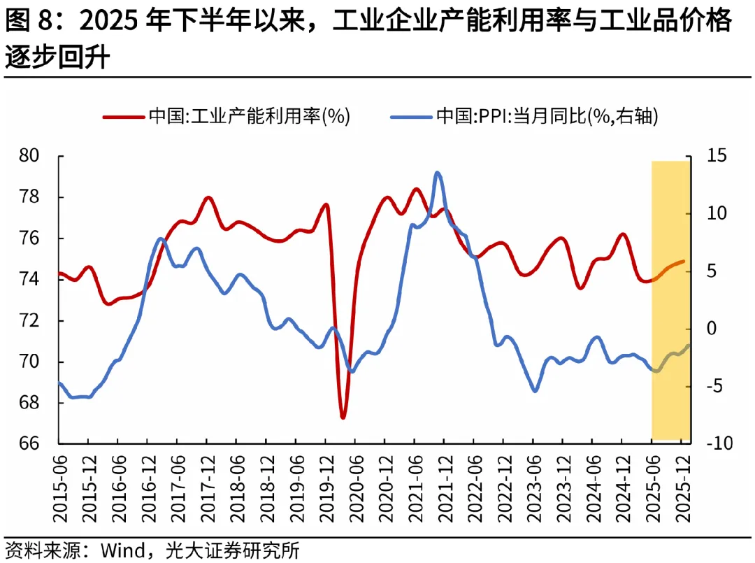 2025年政策落脚点主要在于强化行业自律,加强产能治理,治理低价无序竞争。从效果来看,2025年下半年以来工业企业价格、利润均有所改善,新兴行业产能出清情况好于传统行业。但目前来看,经济“供需强弱”矛盾仍存,PPI仍处在同比负增长区间,企业盈利基础尚不稳定。推动供需关系改善、促进物价由负转正仍是2026年整治“内卷式”竞争的重要目标。