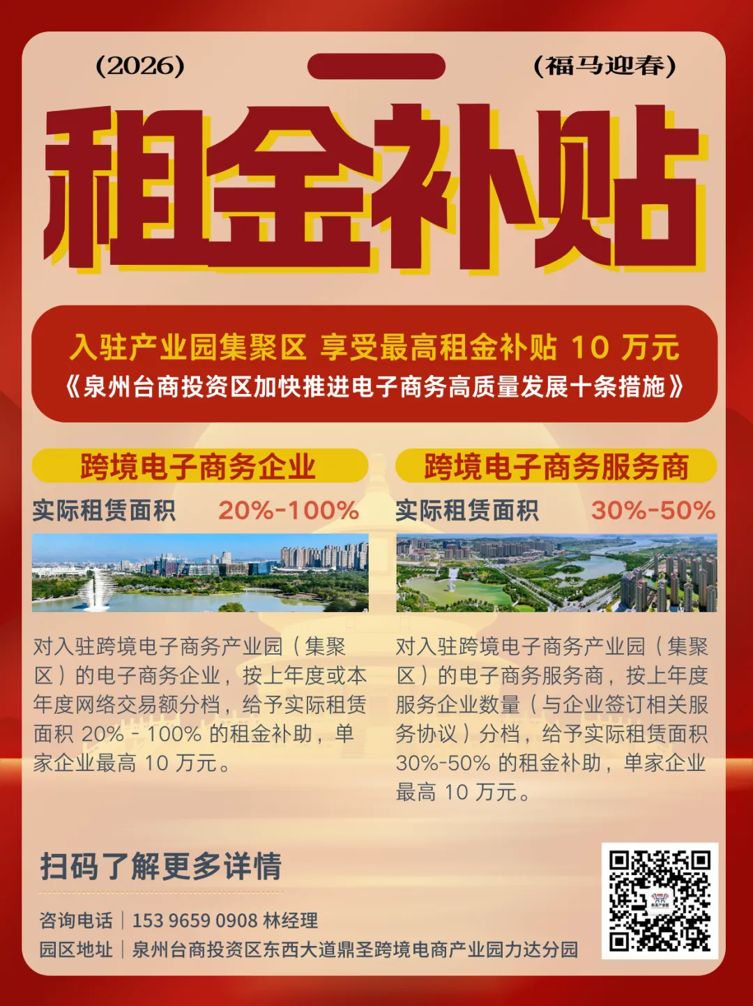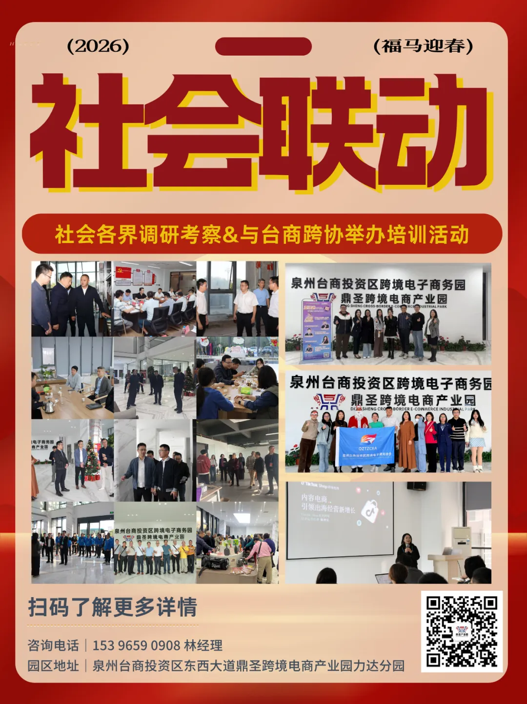 鼎圣跨境电商产业园项目亮点一览🏆跨境综服平台鼎圣跨境电商产业园携跨境电商综服平台项目签约泉州台商投资区重磅喜报!鼎圣跨境综服平台要来咯~热烈祝贺鼎圣跨境电商产业园与厦门自贸试验区电子口岸有限公司达成合作!📍区位优势鼎圣跨境电商产业园项目区位优势在哪里?💪8 家亿级大卖落户十余年精心擘画之作!鼎圣跨境电商产业园项目背景大起底!💰最高 10 万元租金补贴重磅!入驻鼎圣跨境电商产业园,享政策红利!🌟六校合作产教融合6 校合作+亿级大卖导师天团!鼎圣跨境电商产业园人才培训助出海~🏆往届培训活动台商投资区首次!TikTok Shop 主题分享会成功举办,鼎圣跨境电商产业园荣幸助力干货满满!亚马逊官方讲堂首次走进泉州台商投资区!鼎圣跨境电商产业园荣幸助力~泉州台商区首届沃尔玛分享会圆满举行!快来鼎圣跨境电商产业园,和我们一起开拓全球电商新机遇!💼企业入驻企业入驻 | 亿级卖家索尔诺入驻鼎圣跨境电商产业园,双向赋能,协同进阶企业入驻 | 俄罗斯市场大卖凯亚德入驻鼎圣跨境电商产业园,共拓海外新局企业入驻 | 品牌出海实力派——真率贸易入驻鼎圣跨境电商产业园,携手谱写跨境新篇章企业入驻 | 零距离跨境物流入驻鼎圣跨境电商产业园,强强联合打造高效出海物流生态!企业入驻 | 燕泰国际贸易入驻鼎圣跨境电商产业园,借力启航,开创新局