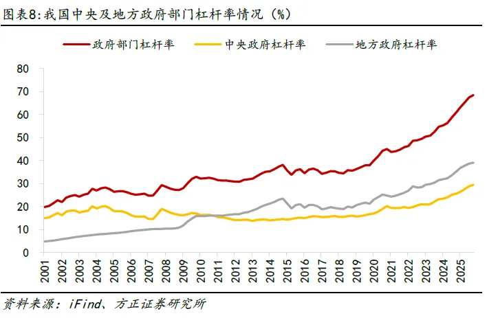 不过值得注意的是,我国政府债务在结构上存在中央财政压力负担较小而地方政府偿债压力较大的问题。根据国家资产负债表研究中心的数据,截至2025年底,我国政府部门整体杠杆率为68.4%,其中地方政府杠杆率为39.1%,显著高于中央政府杠杆率的29.4%。《政府工作报告》提出,中央财政要增加对地方财力性转移支付规模,开展整合统筹使用转移支付资金试点,增强地方自主财力和统筹能力。