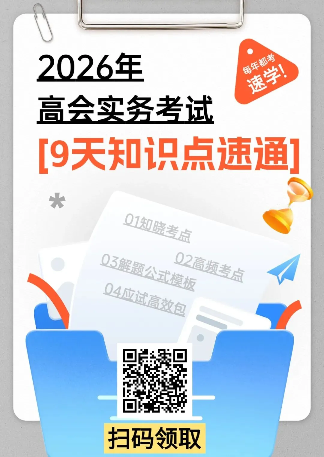 未来 5 年按照十五五规划的路径,定会有更多的地区相继推出更多优待政策,培养及扶持高技能人才发展。如果你具备高级会计师的报考资格、还没有考取证书,请务必抓紧!跟随十五五的发展方向,自己能力提升的同时,享受各地人才福利带给大家的生活改善。26年高级会计实务考试9点知识点速通,免费发放给大家。