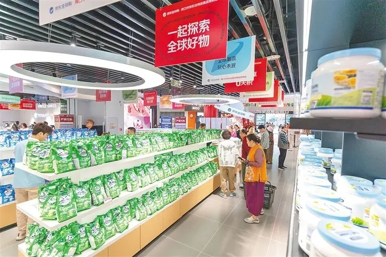 顾客在海口王府井海垦广场的京东日用消费品免税店选购商品。海南日报全媒体记者 袁琛 摄