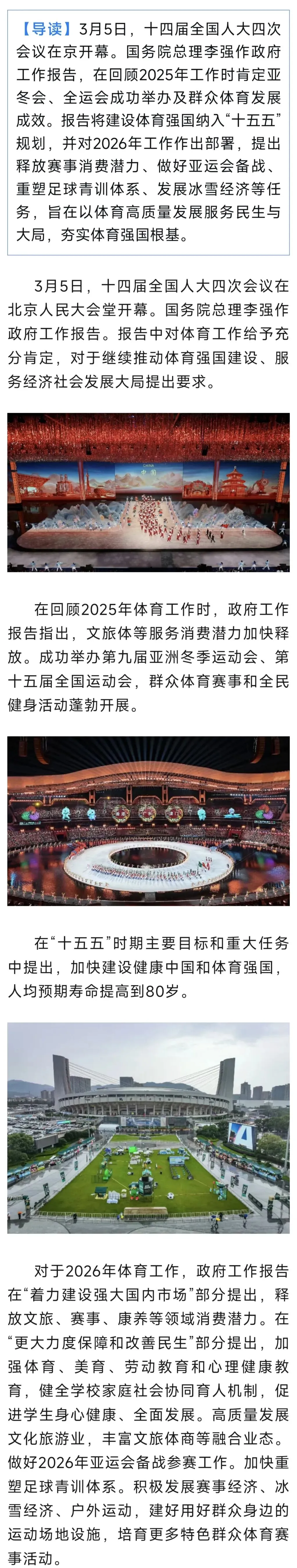 政府工作报告充分肯定体育工作