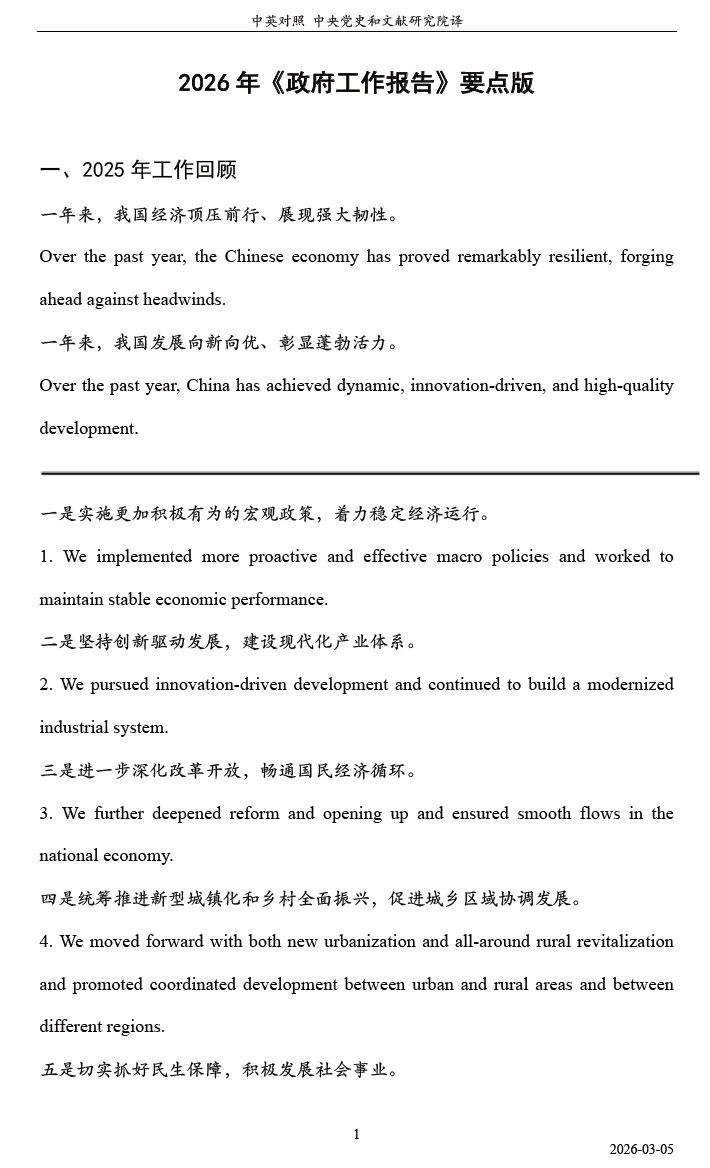 然姐已经把2000年以来的政府工作报告双语版给大家整理好啦,有需要的同学在公众号回复“翻译资料”即可领取