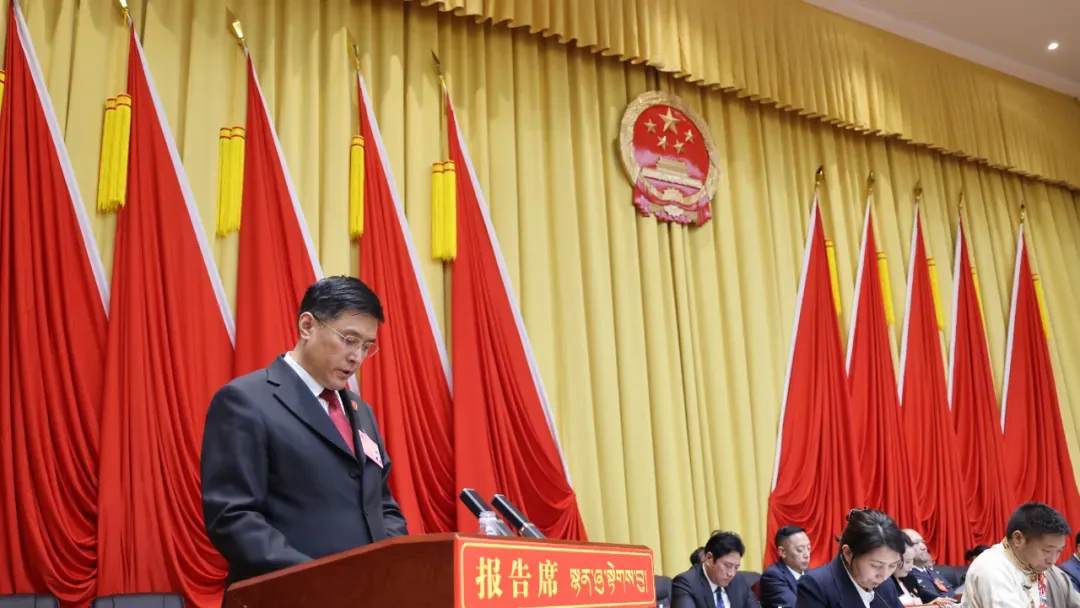 3月6日,在玉树市第三届人民代表大会第六次会议上,玉树市人民法院党组书记、院长周洪洋作法院工作报告。