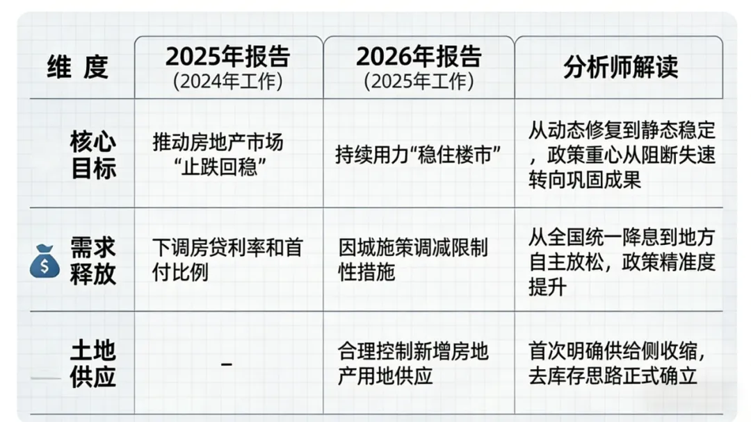 与2025年“持续用力推动房地产市场止跌回稳”的表述相比,2026年的措辞有了微妙而深刻的变化。这意味着什么?