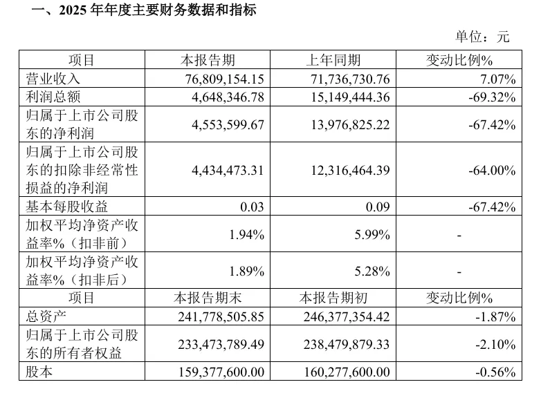 近日,山东路斯宠物食品股份有限公司发布2025年年度业绩快报公告,财报显示,全年营收8.61亿元,同比增长10.73%。当期归母净利润约6189万元,同比下滑21.02%;扣除非经常性损益后的净利润约5964万元,同比下降22.04%。