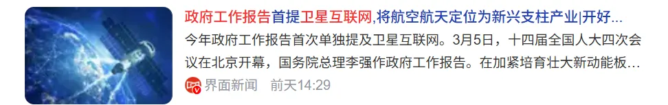 2026 年政府工作报告释放最强信号:首次单独提及卫星互联网,明确将航空航天定为新兴支柱产业。