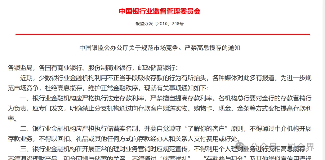 笔者检索很久,发现2010年的《关于规范市场竞争、严禁高息揽存的通知》(银监办发〔2010〕248号,以下简称“248号文”),是普通基层对抗“内卷”最有力的制度依据。现在对其进行解读,供大家参考。