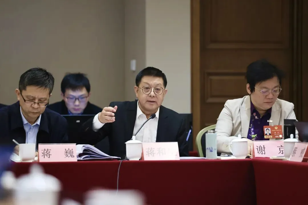 3月7日,出席全国政协十四届四次会议的住桂全国政协委员参加小组会议讨论政府工作报告和计划报告、预算报告。孙大伟、王心富、杨静华、眭国华、钱学明、巫家世、彭健铭、欧余军等委员及列席人员谭丕创参加讨论。