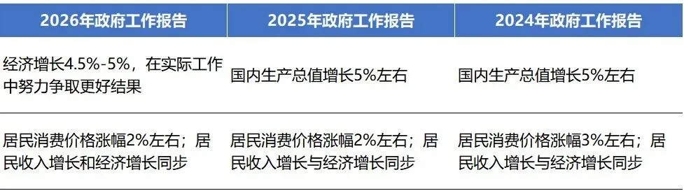图表1:政府工作报告中经济指标预期目标对比