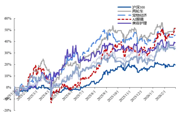整体来看,本次政府工作报告中的消费政策呈现出三大特点:一是消费战略地位提升,成为扩大内需的核心抓手;二是政策工具更加多元,从补贴刺激扩展至收入、金融和制度供给;三是消费结构由商品向服务和体验型消费加速转型。在政策推动下,文旅休闲、体育赛事、养老服务、线下消费场景以及县域消费等领域有望持续受益。