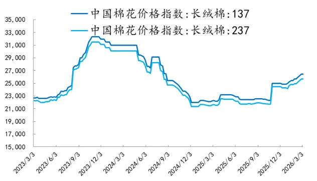 原材料价格方面,LME铜、LME铝环比上周分别-4.7%、+7.2%。本周长绒棉137现货26440元/吨(0.0%)。