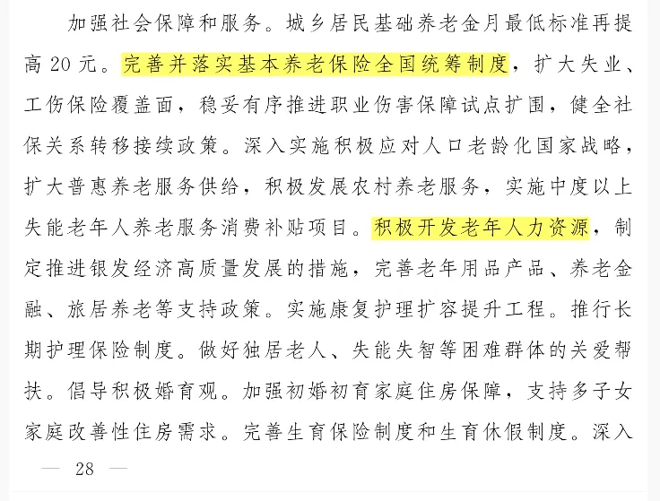 这两天闲来无事翻阅2026年政府工作报告,看到一句特别吸引我的话:“积极开发老年人力资源”。说实话,“老年人力资源”这个词我还是第一次这么明确地听到,而且还加了“积极开发”四个字,短短一句话,背后藏着国家对未来很深的考量。