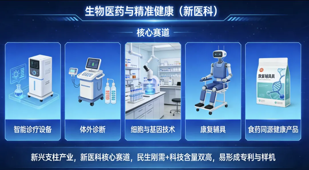 立足民生刚需与科技前沿,生物医药与精准健康是高教主赛道新医科类别的核心方向,兼具高创新价值与产业化潜力。