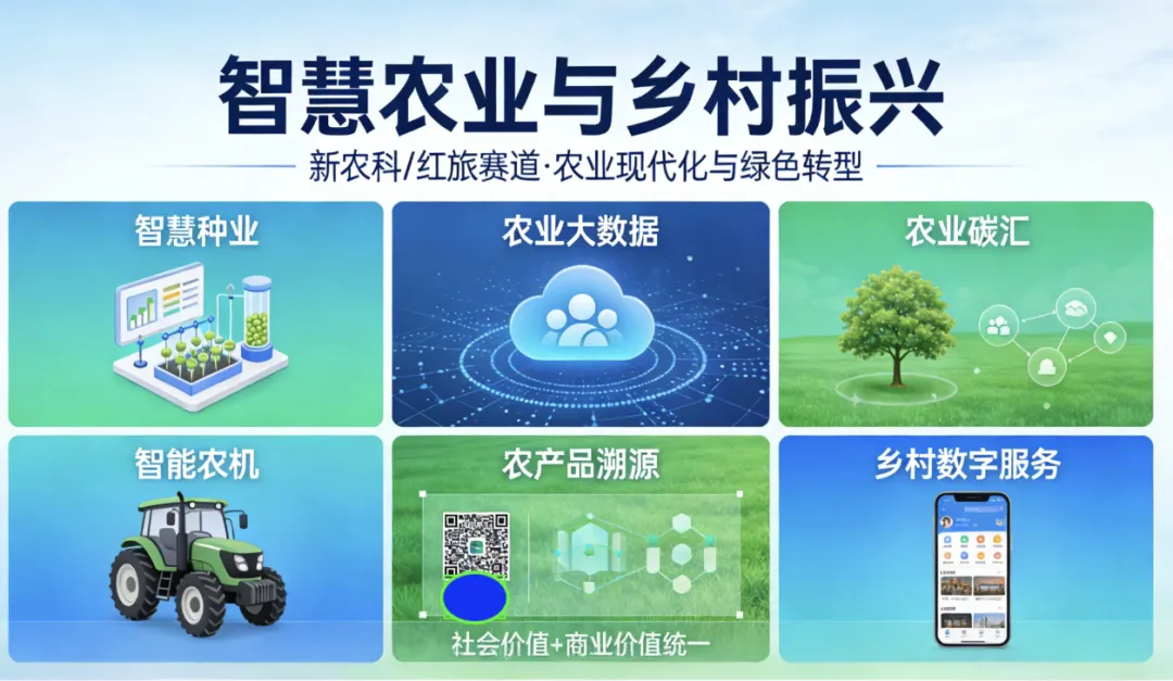 智慧农业与乡村振兴方向深度融合新农科特色与红旅赛道属性,以农业现代化与绿色转型为核心,兼顾社会价值与商业价值的统一,是大学生将专业知识赋能乡村发展的最佳切入点。