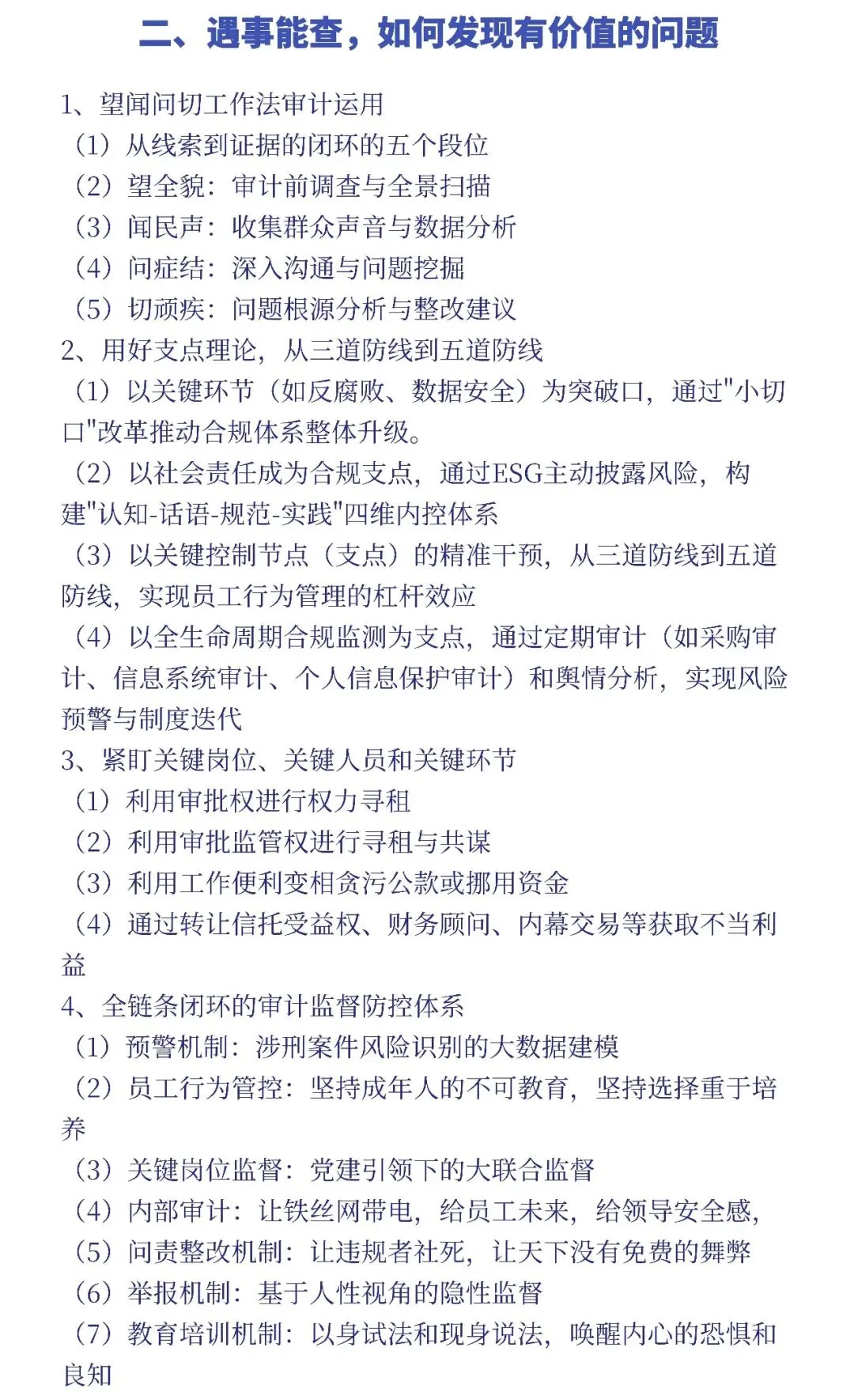 五是监督协同机制仍需完善。监事会与董事会、高级管理层、内审部门、合规部门的沟通协调不够顺畅,监督信息共享不够及时、全面,部分监督事项存在重复检查或监督盲区,监督合力尚未充分发挥[XXX]。