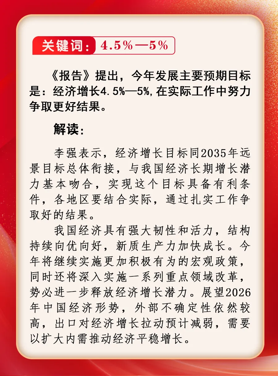 【中经头条】政府工作报告提出“今年GDP增长预期4.5%-5%”