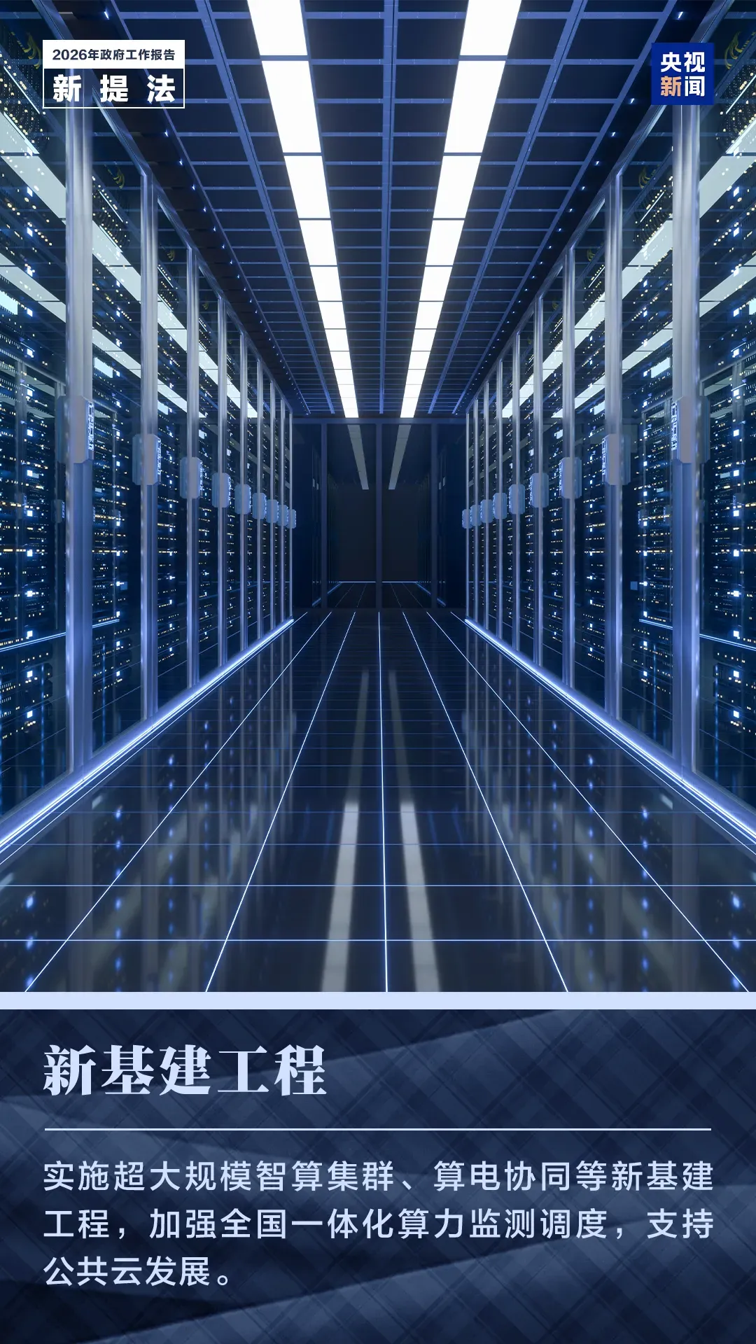 在“打造智能经济新形态”方面,政府工作报告中提出,“实施超大规模智算集群、算电协同等新基建工程”。“新基建工程”是一个新词,背后释放了怎样的政策动向?