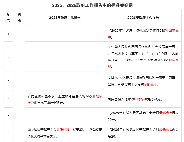 下面将2025年和2026年政府工作报告中提及“标准”之处进行了汇总整理,供各位读者学习领会。