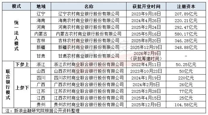 除了甘肃农商行,全国已有六地统一法人模式下的省级农商银行正式开业,包括辽宁、海南、河南、内蒙古、吉林和新疆。另外,浙江、山西、四川、广西、江苏、江西、贵州纷纷成立了省级农商联合银行,目前均已开业。