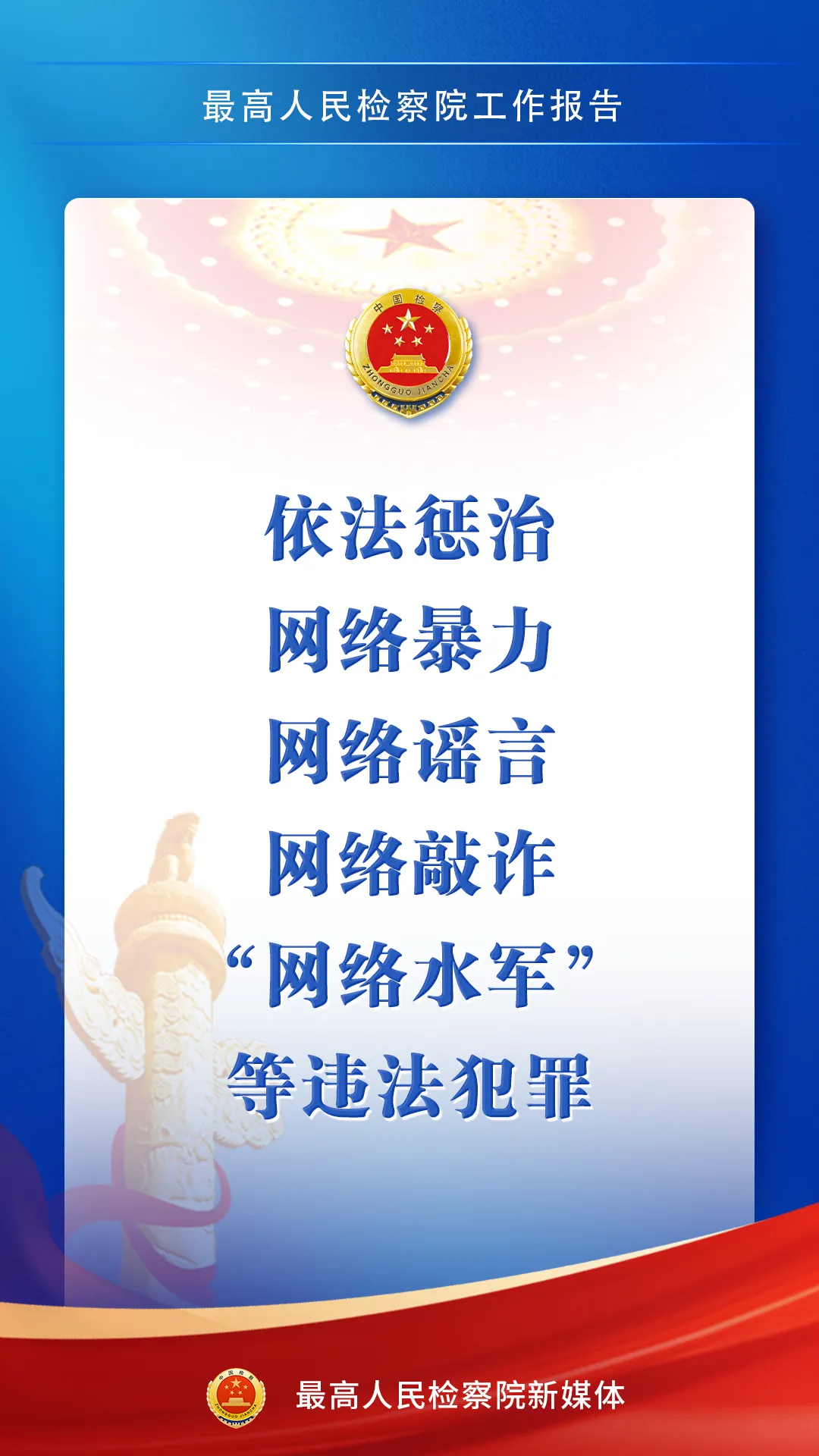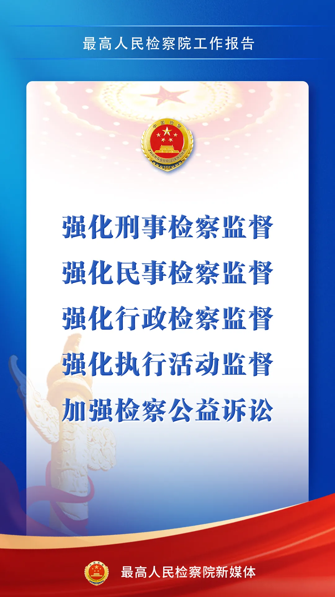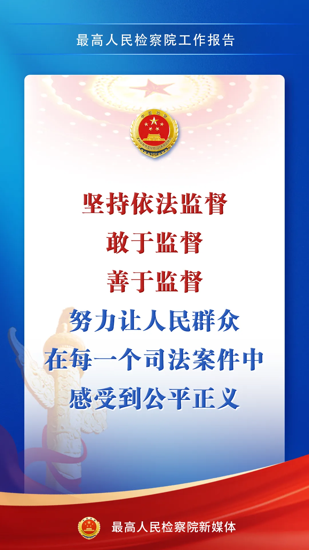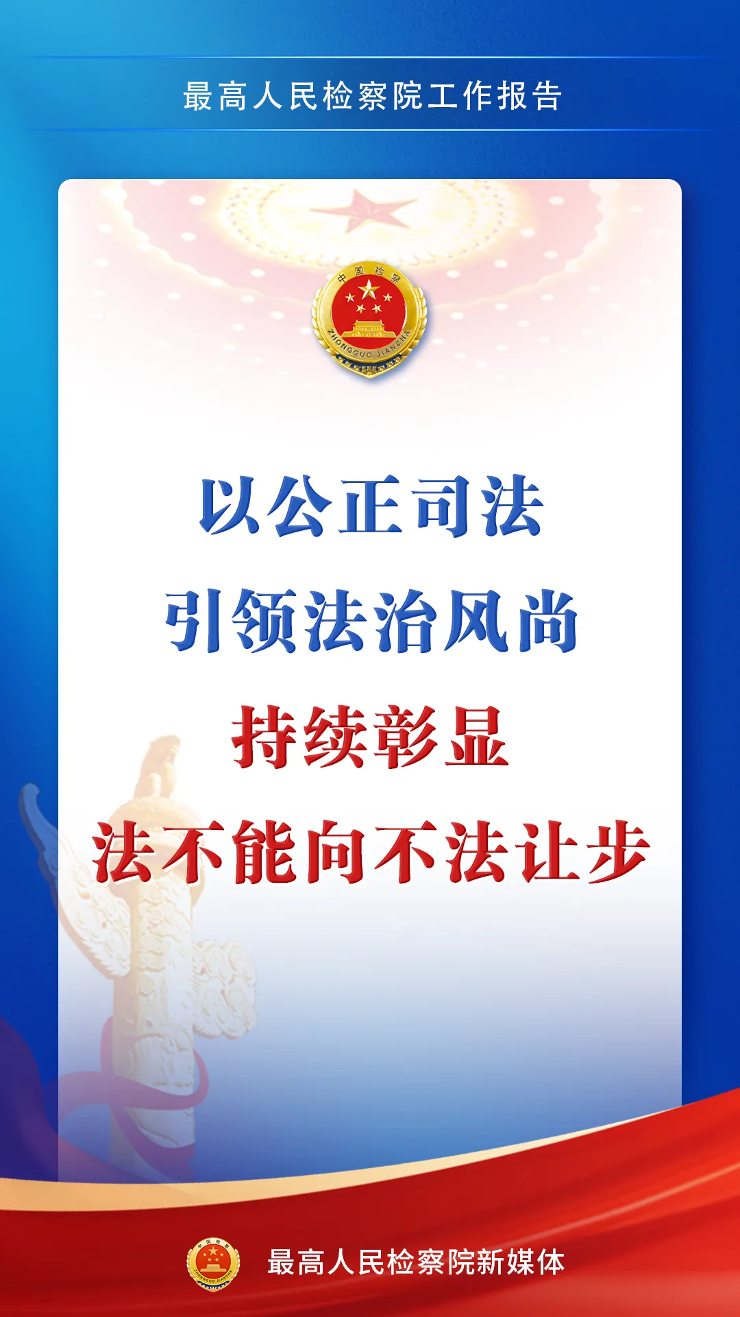 3月9日,最高人民检察院检察长应勇在第十四届全国人民代表大会第四次会议上作最高人民检察院工作报告。一组海报,带您感受报告中的法治力量↓↓↓