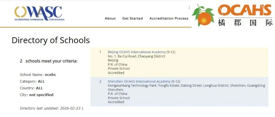 WASC官网已于近日更新了认证情况,这意味着橘郡的教学质量、课程体系及管理水平已与美国本土顶尖学名校“同频共振”,全球认证,官网可查。