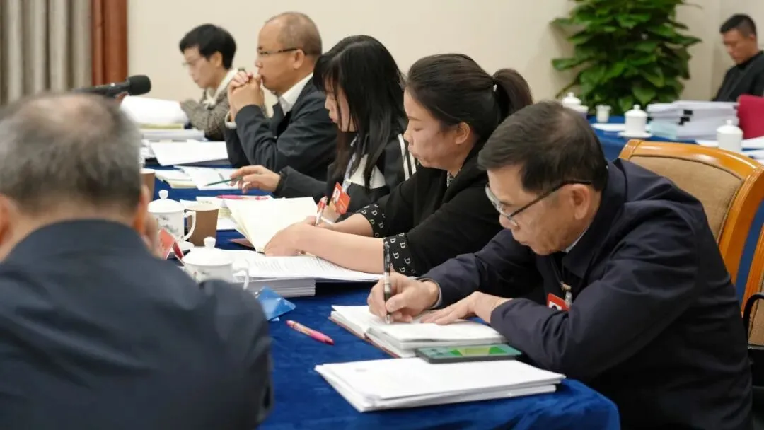 代表们时而低头记录要点,时而抬头交流观点