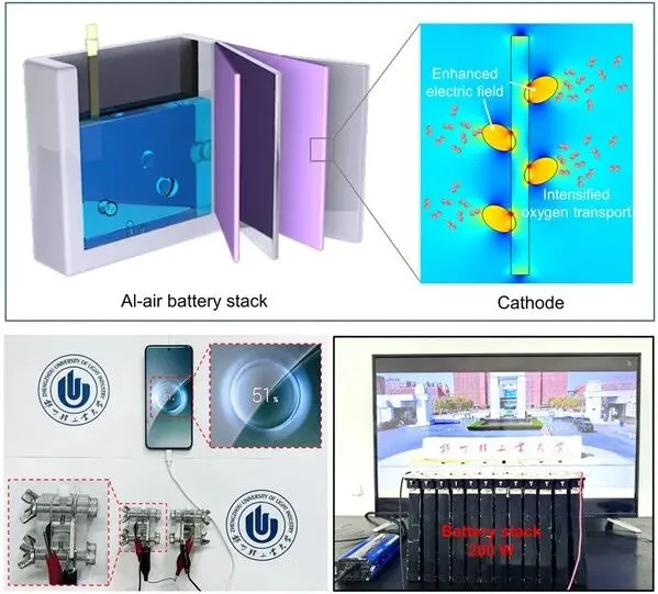 ■近日,郑州轻工业大学校长魏世忠教授团队与北京大学郭少军教授合作,在材料领域国际顶级学术期刊《Advanced Materials》(影响因子26.8)上发表题为“Pt1/MnO2 Nanotip Inducing Local Electric Field Intensifies Oxygen Transport for High-Energy-Density Al-air Battery Stacks”(《Pt1/MnO2纳米尖端诱导局域电场增强氧气传质用于高能量密度铝空气电池电堆》)的高水平研究论文。郑州轻工业大学为第一署名单位,魏世忠教授和巩飞龙副教授为共同通讯作者,材料与化学工程学院青年教师宋敏博士和硕士研究生张红阁为共同第一作者。本研究得到了国家自然科学基金重点项目等项目的资助。该研究聚焦单原子催化剂在金属空气电池应用中氧气传输效率低的关键瓶颈问题,通过调控MnO2载体晶面,成功增强局域电场并优化活性位点配位微环境,显著降低空气阴极氧气传输阻力,提高Pt单原子浸出能垒,从而大幅提升氧还原反应活性和稳定性,实现铝-空气电池的高效稳定运行。实验数据显示,采用B-Pt1/MnO2催化剂的电池能量密度高达3690.6 Wh kg-1,在50 mA cm-2电流密度下表现出优异稳定性,性能优于目前已报道的同类催化剂。基于该催化剂的实验室电池可稳定为手机充电,组装的铝空气电堆能量密度达到480.2 Wh kg-1,接近美国能源部对动力电池的技术要求,并可稳定驱动180瓦电视工作。技术经济分析表明,该系统的成本仅为已报道铝空气电池的1/50,展现出在可持续能源领域的广阔应用前景。热点内容