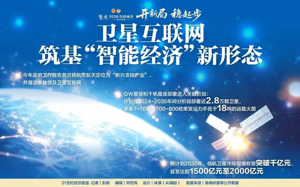 提请十四届全国人大四次会议审查的“十五五”规划纲要草案提出,“适度超前建设新型基础设施”,并对全国一体化算力网、卫星互联网、信息通信网络等“三张网”的建设作出明确安排。其中关于卫星互联网的部分显示,统筹推进卫星互联网星座建设,提升发射测控保障和安全防护能力,加快卫星互联网和北斗在重点行业、大众消费等领域规模化应用和国际化推广。