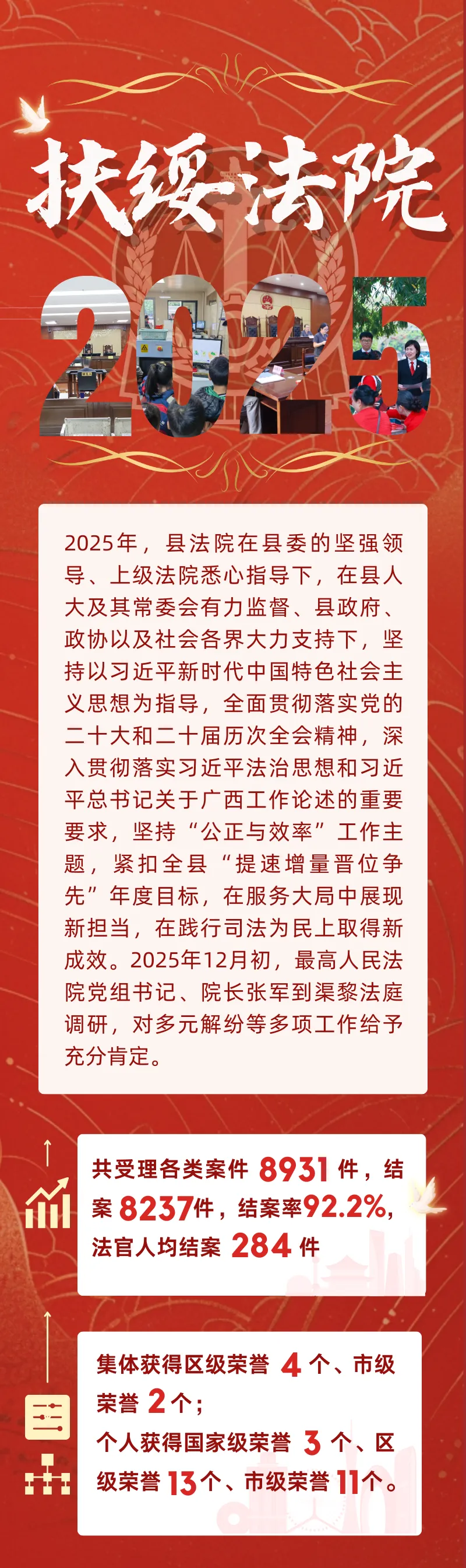 2026年3月11日,在扶绥县第十七届人民代表大会第六次会议上,扶绥县人民法院党组书记、院长黄高文作《扶绥县人民法院工作报告》。